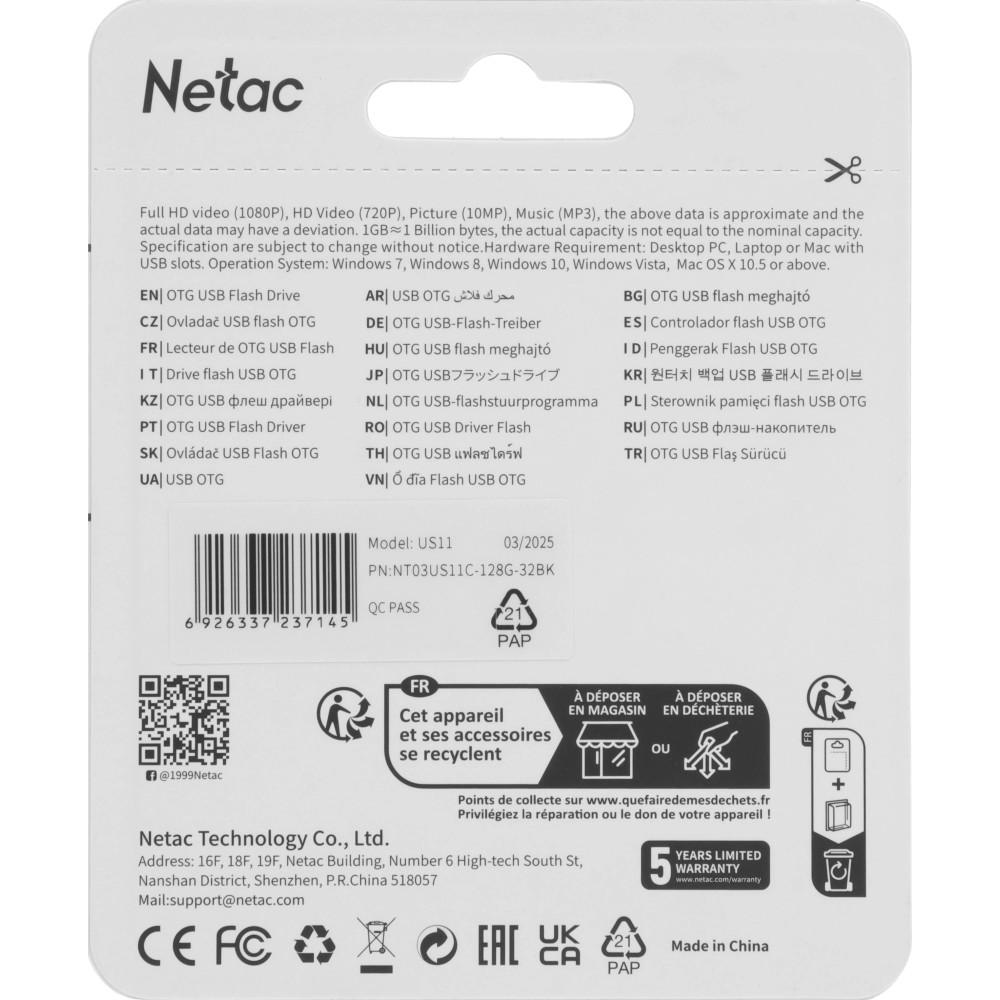 Флешка Netac US11 128Gb USB 3.0 + Type-C (NT03US11C-128G-32BK), Черный/серебристый